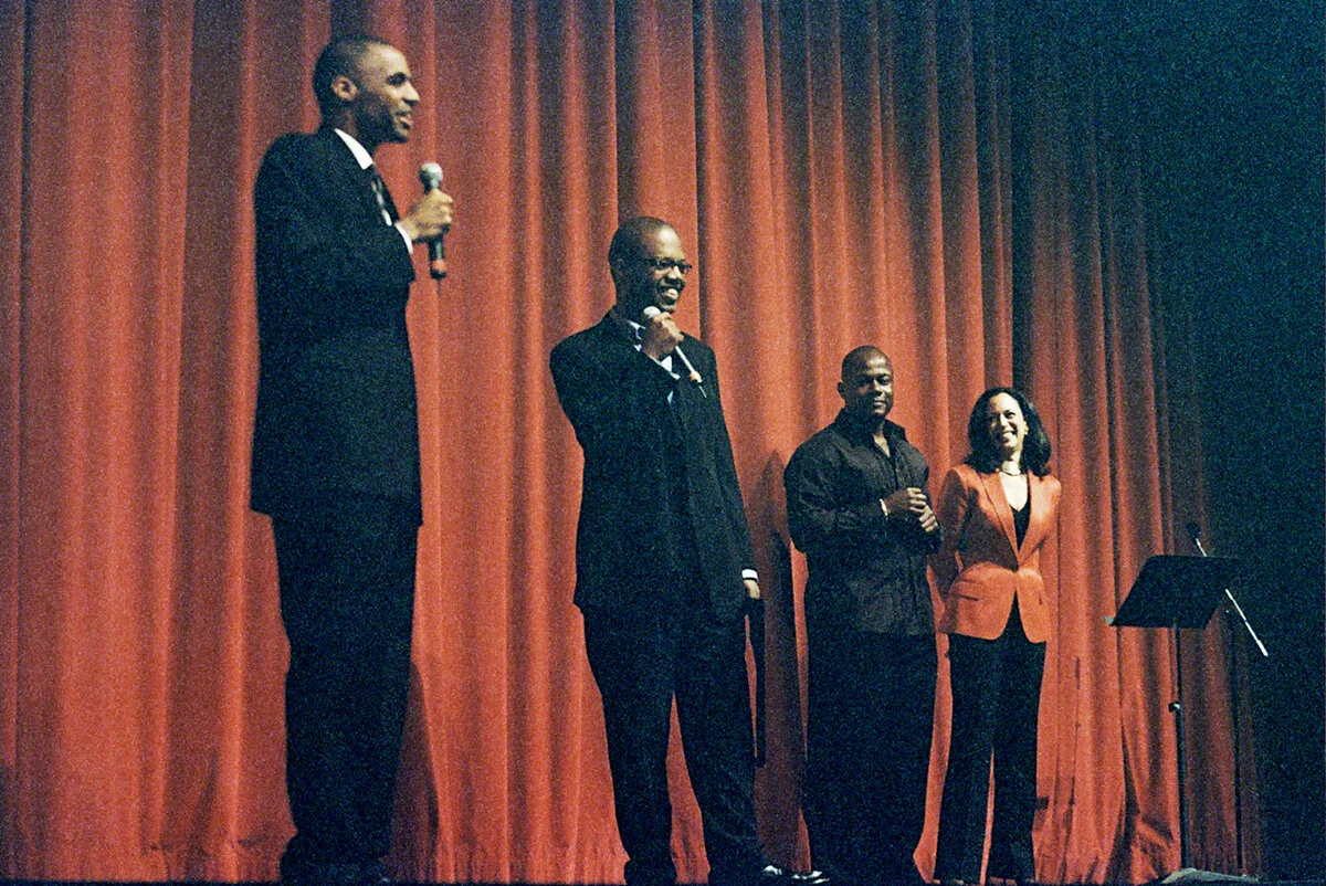 Vice President Kamala Harris, Michael Deflorimonte, sf|noir Co-founder Brian Gadsden, and me welcoming the audience to an sf|noir event at the Palace of Fine Arts in San Francisco.